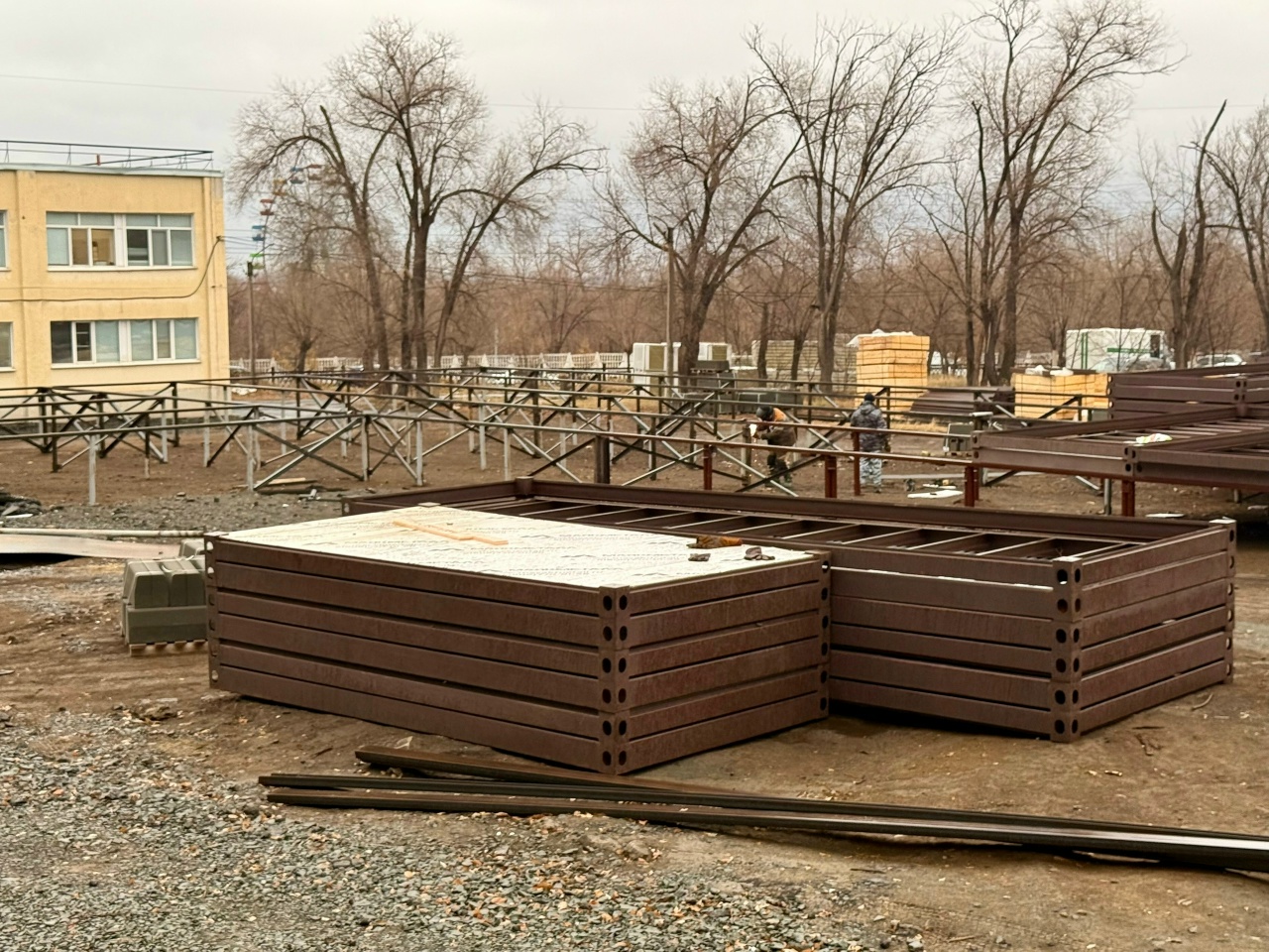 В настоящее время ведутся работы по возведению самой модульной конструкции, монтируется каркас для несущих стен.
