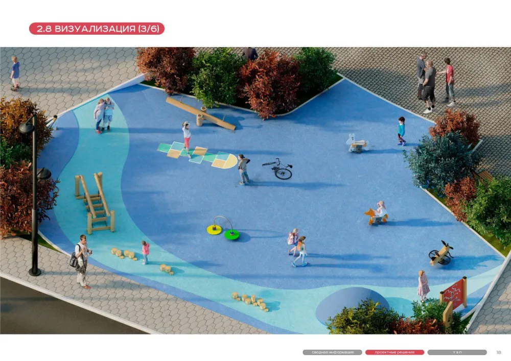 Уютные качели, удобные скамейки, столы для игры в шахматы, уголки буккроссинга – комфортное времяпрепровождение обеспечено людям с разными желаниями и потребностями. Для детей обустроят 200 квадратных метров современной площадки как для активных, так и для развивающих игр.