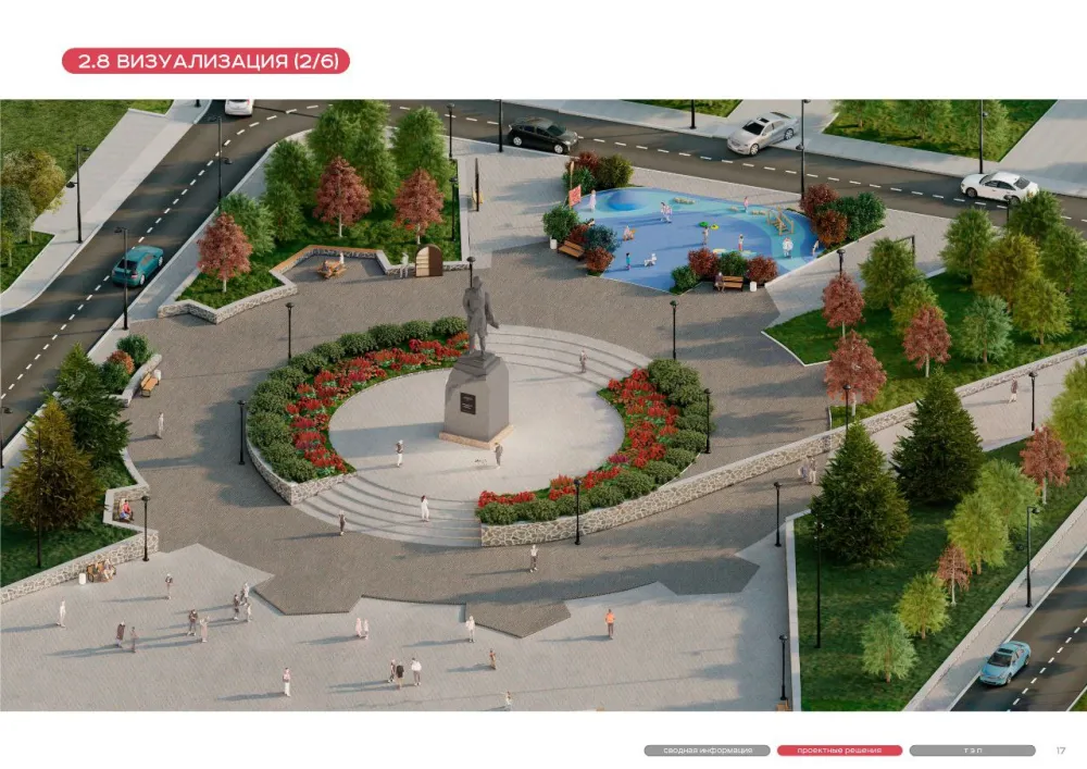 На площади планируется проводить и городские праздники, для этого здесь установят мобильную сцену, оснастят камерами видеонаблюдения. При проектировании нового облика места речь идёт и о дополнительном озеленении – хвойными и лиственными деревьями.