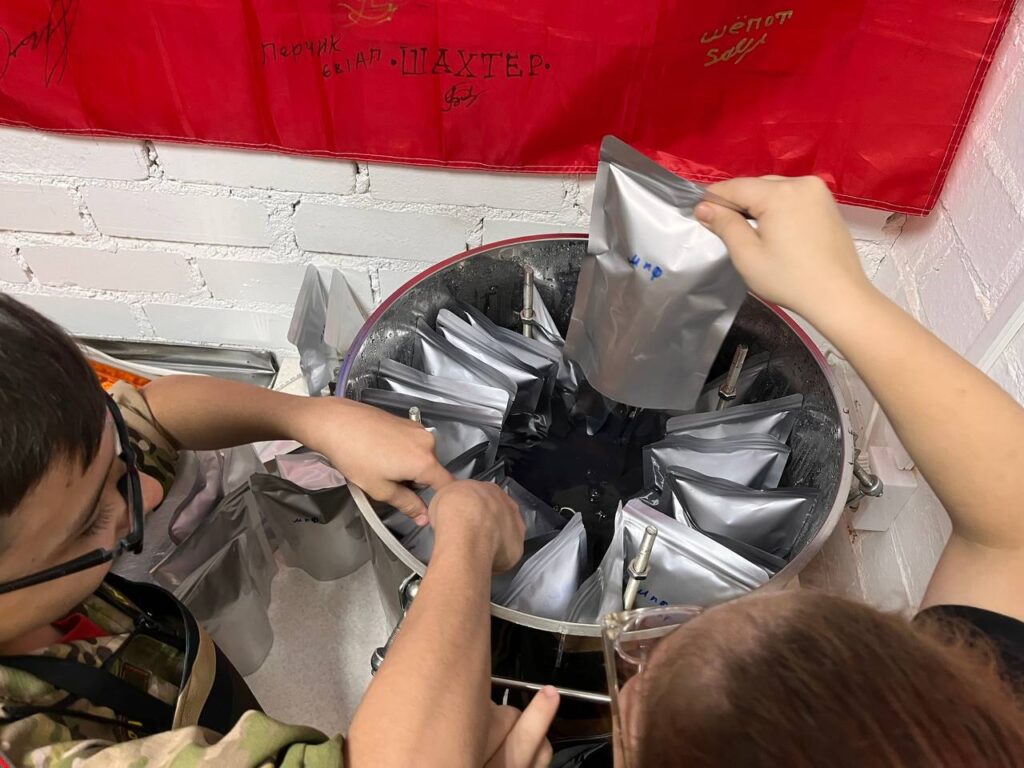 Волонтёры упаковывают готовые блюда в реторт-пакеты, стерилизуют их в автоклавах для обеспечения долгой сохранности и только потом отправляют в зону СВО. Это гарантирует, что домашние гостинцы дойдут до бойцов в свежем и аппетитном виде. К большому заказу привлекли учащихся школы № 6.
