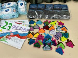Кроме того, общими силами были собраны необходимые вещи: влажные салфетки и носки для бойцов.